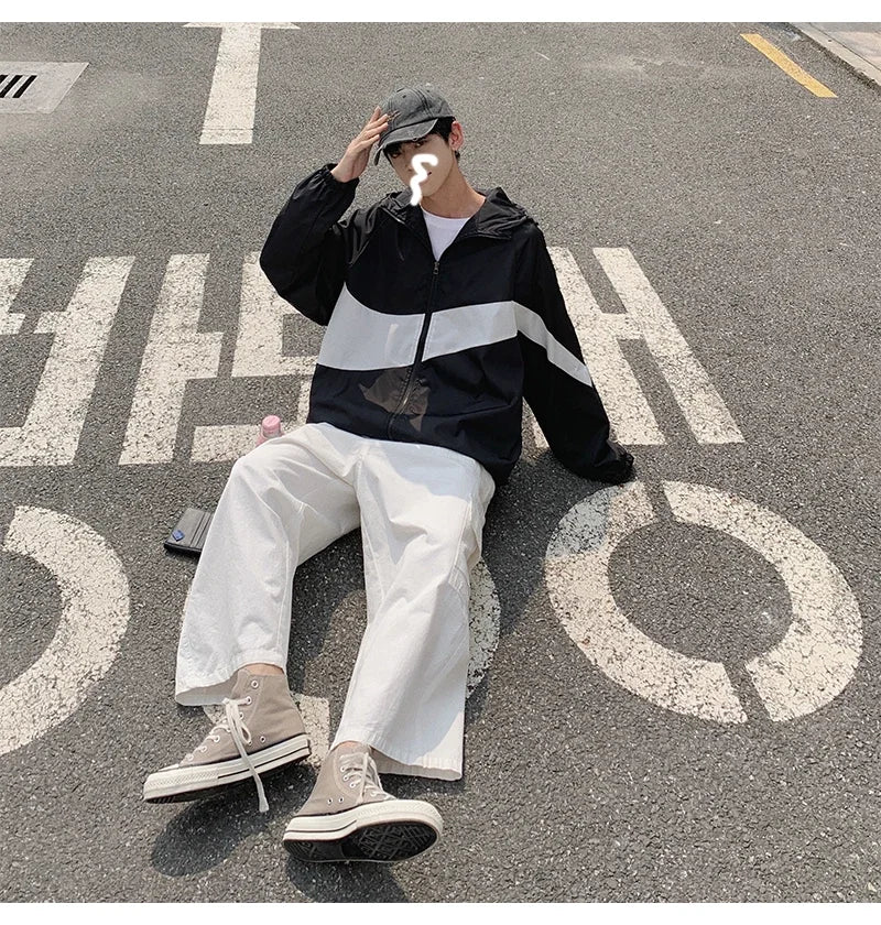 Men's Spring summer New Lightweight Jacket Hooded Outdoor Hiking Climbing Jacket student windproof and sunscreen Thin jacket