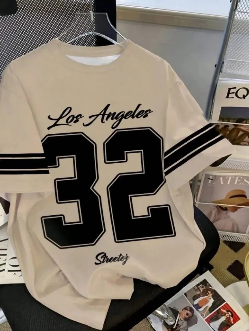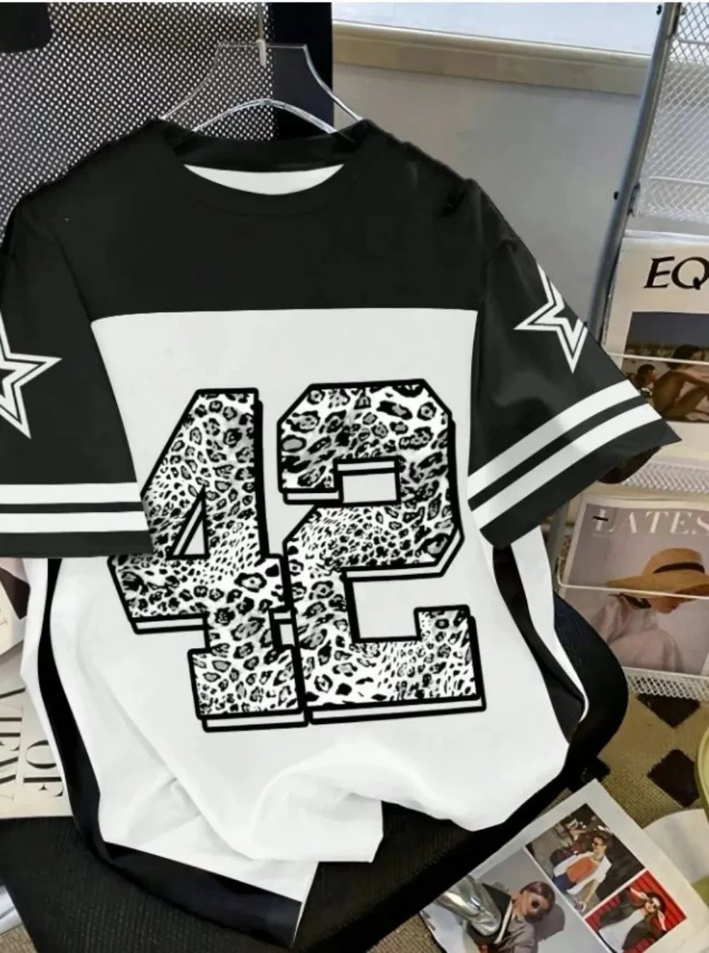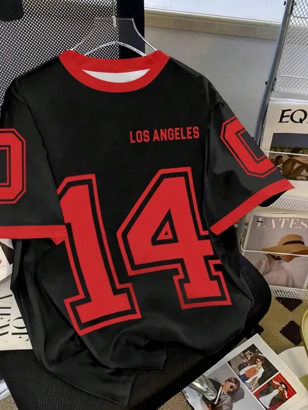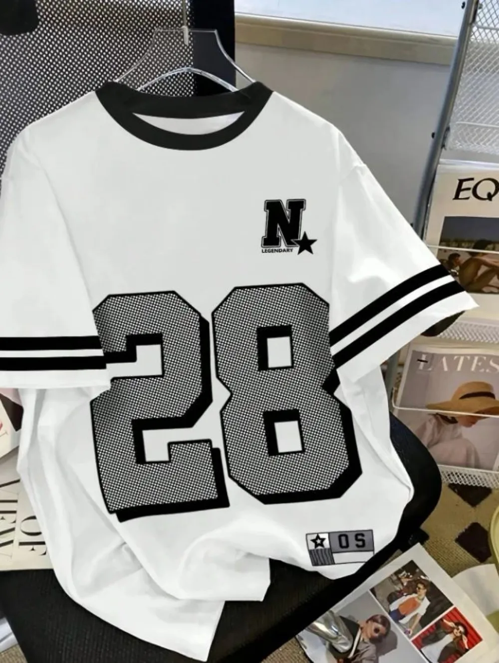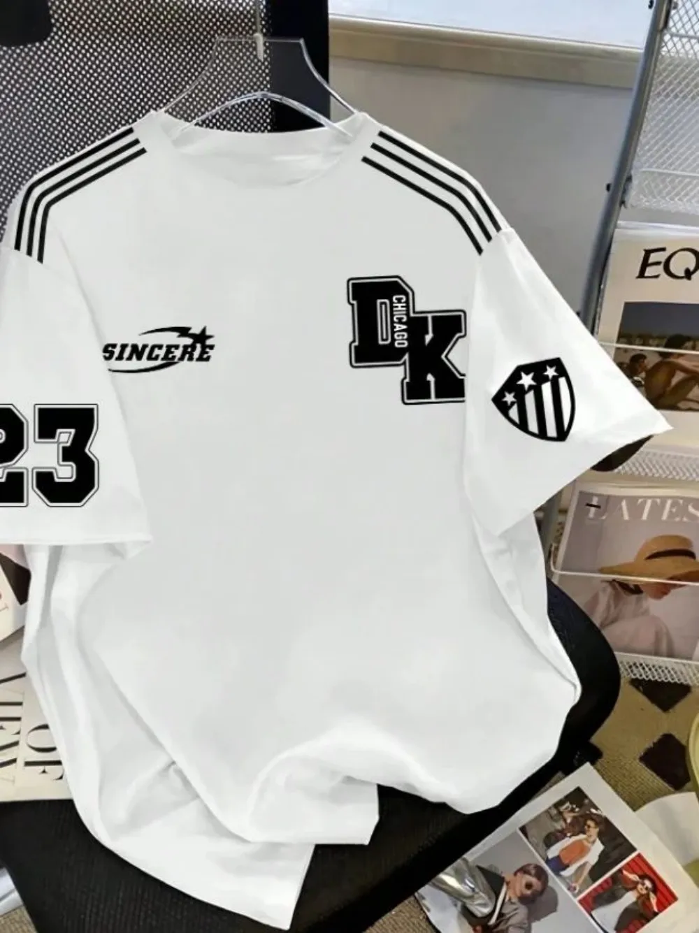 New Summer Men's American Simple Casual Round Neck Breathable T-shirt with Street Digital Printed Pattern Sports Style Top