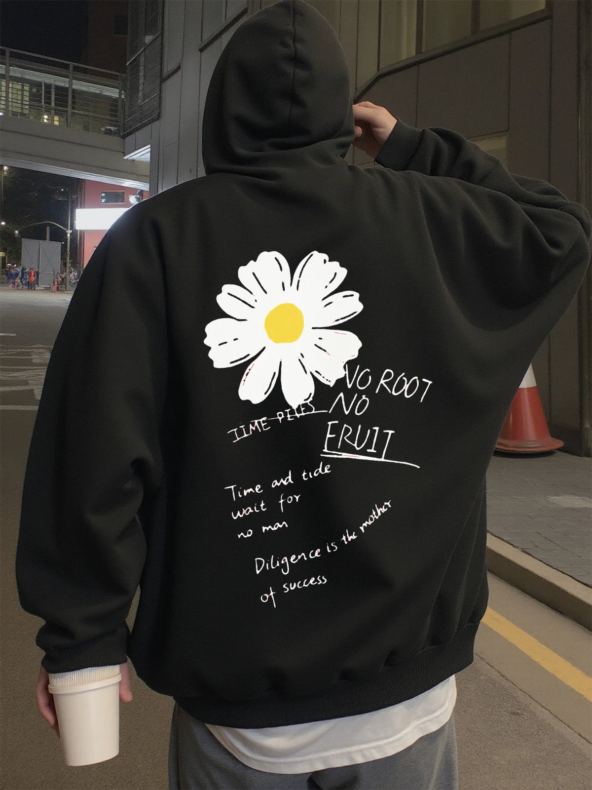Inform when this item available Hoodie for Men, Streetwear, Literary Text Print, Daisy Graphic Hoodies for Men, Suitable for Wearing in Spring, Autumn, and Winter