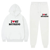 The hoodie features a modern design with a cozy hood and a unique print that expresses your love for your boyfriend, making it a great gift for special occasions. The long pants are designed for ultimate comfort, allowing for easy movement whether you're hitting the gym or just relaxing at home.