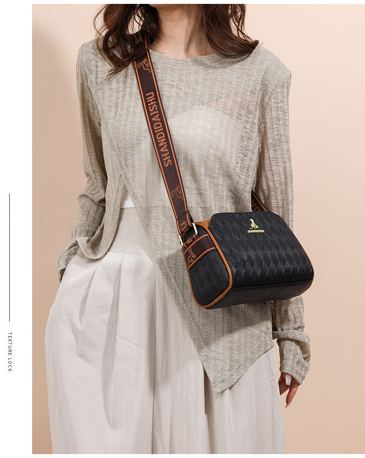 Crafted from high-quality PU material, this bag not only offers durability but also a chic appearance. The medium hardness ensures it maintains its shape while giving you the flexibility and comfort you desire. With its contrasting colors and stylish embossing, this bag is sure to turn heads wherever you go.