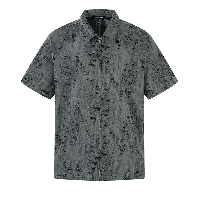 Short Sleeve Shirt for Men and Women Design Distressed Loose Zipper Cardigan